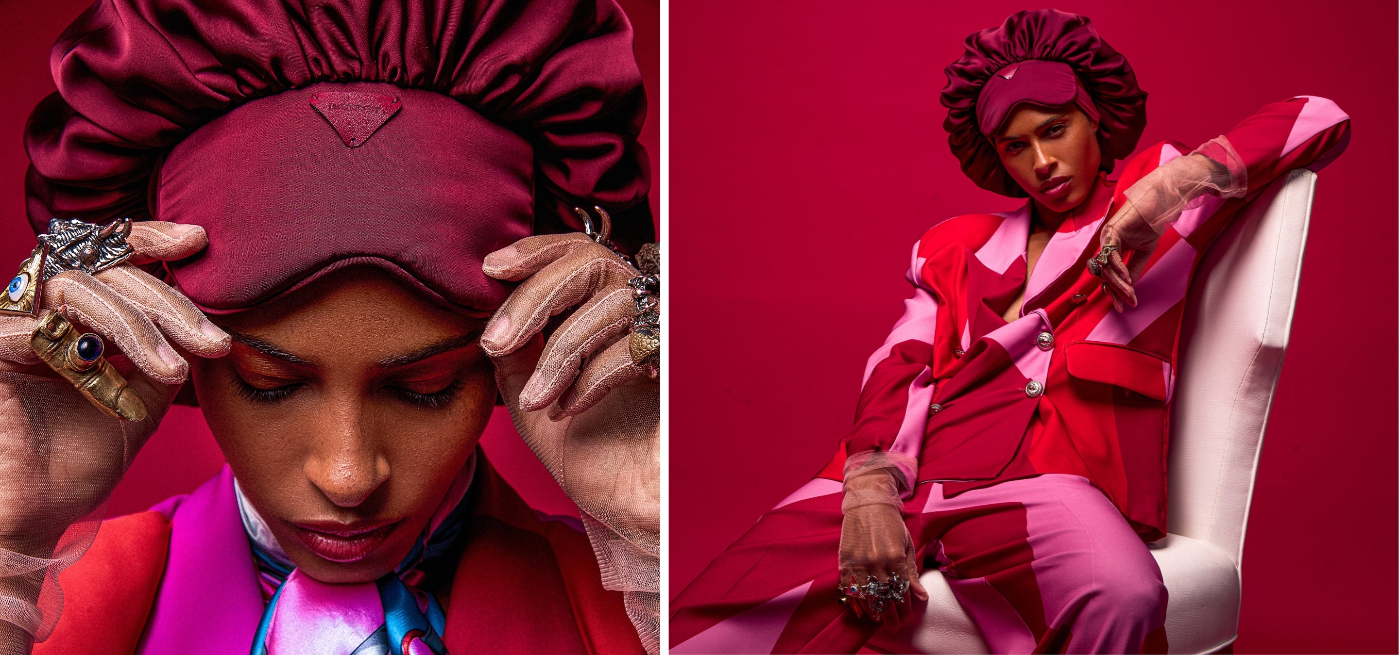 iBonnetĀ® (REM Red) 2-in-1 Adjustable Satin Hair Bonnet and Eye Mask with Gel Insert by St. Cayman