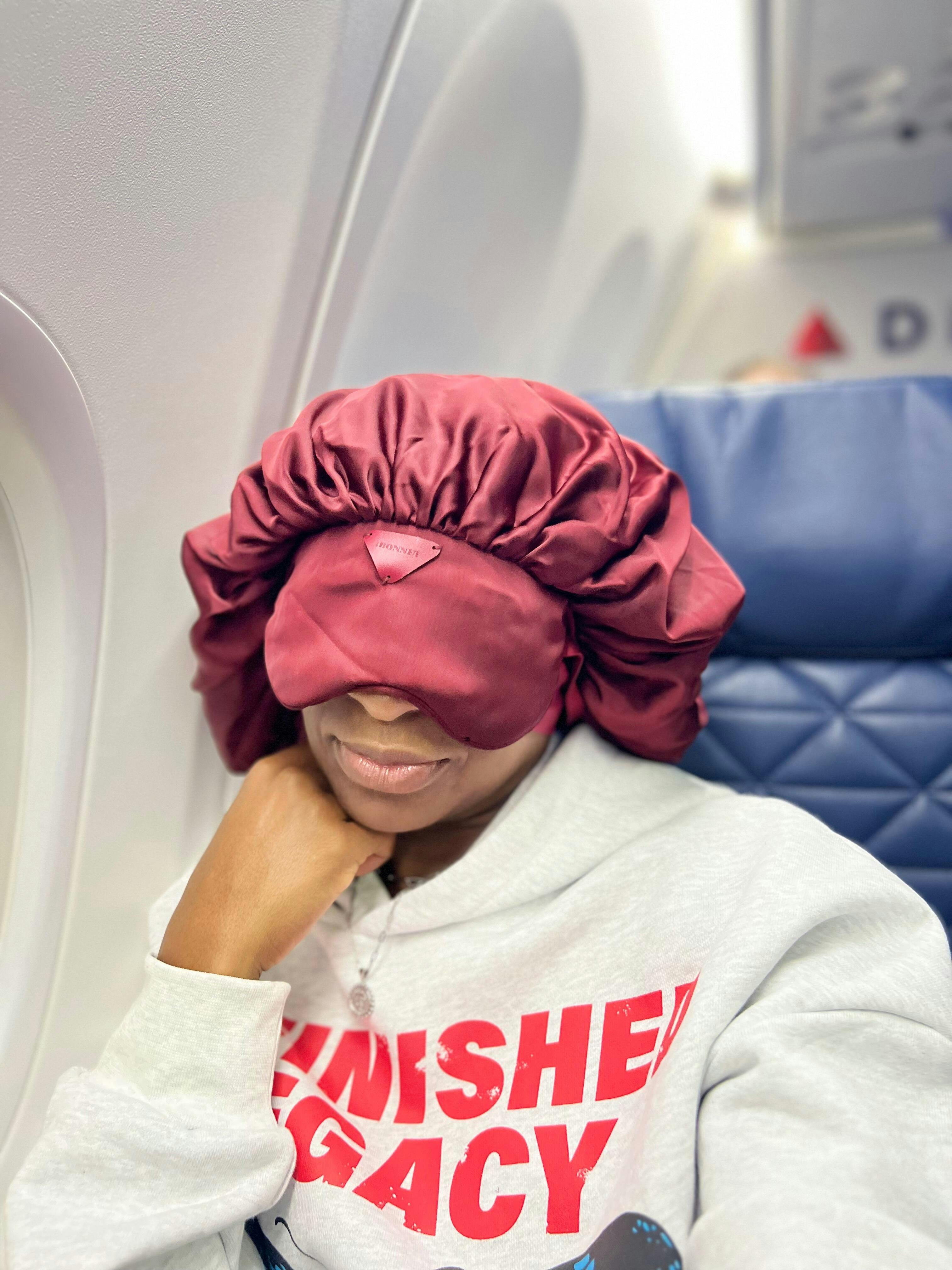 iBonnet® (REM Red) 2-in-1 Adjustable Satin Hair Bonnet and Eye Mask with Gel Insert