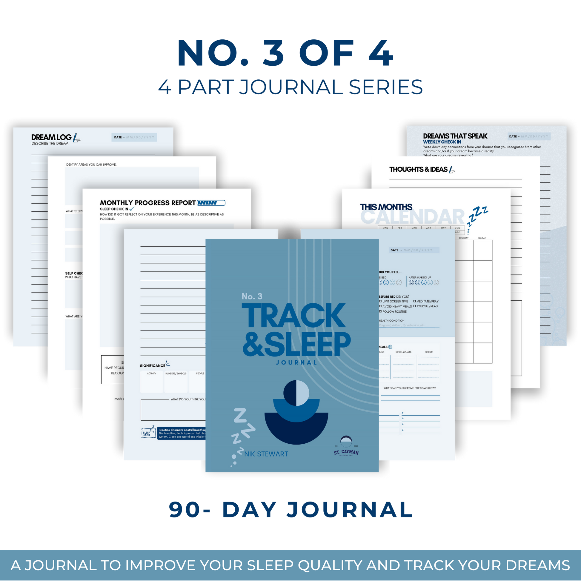 Transform bedtime into a nightly ritual of self‑care with the Track & Sleep No.3 Journal. Designed to help you improve sleep habits, capture dream insights, and build mindful routines across 90 days.